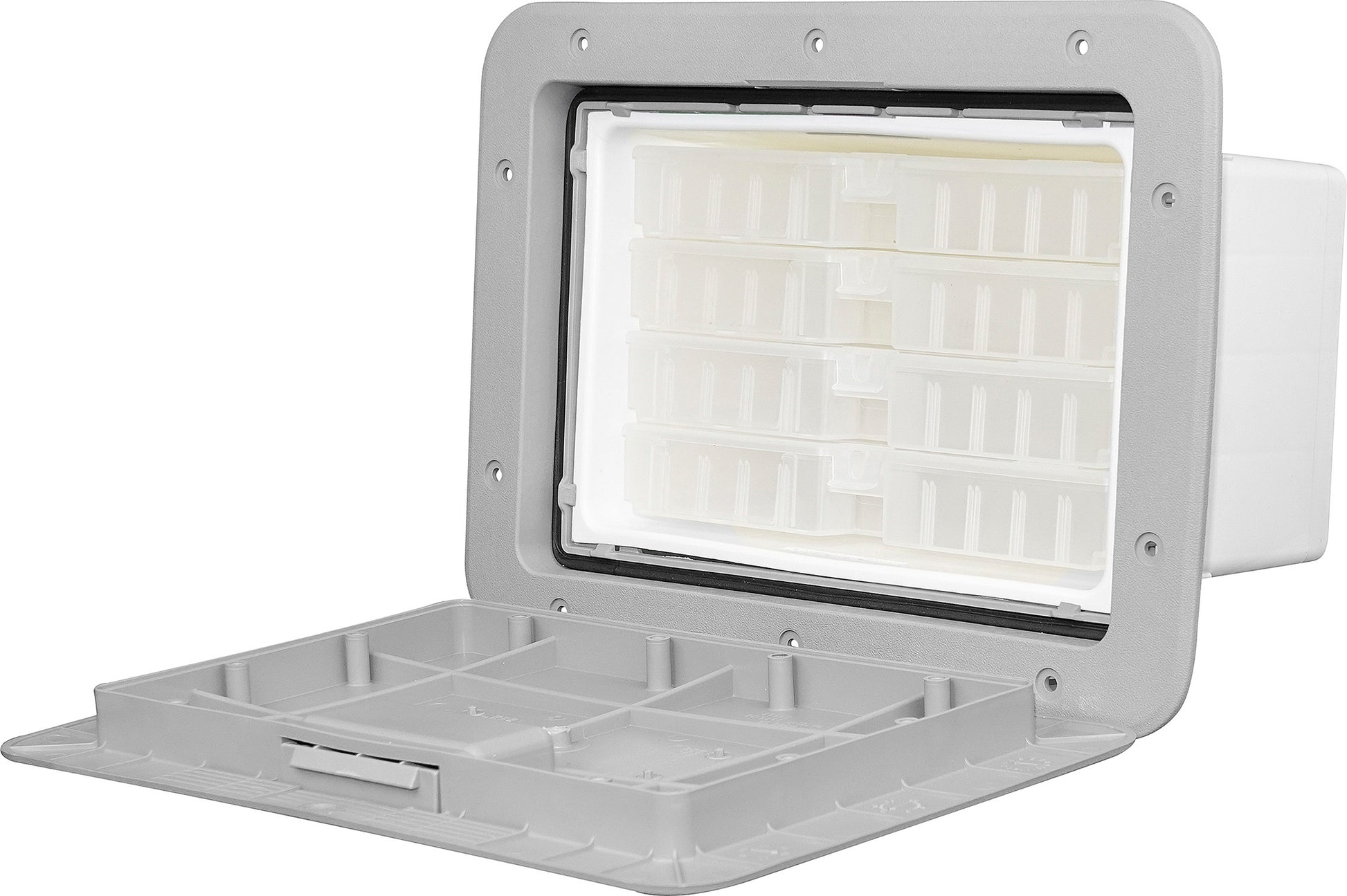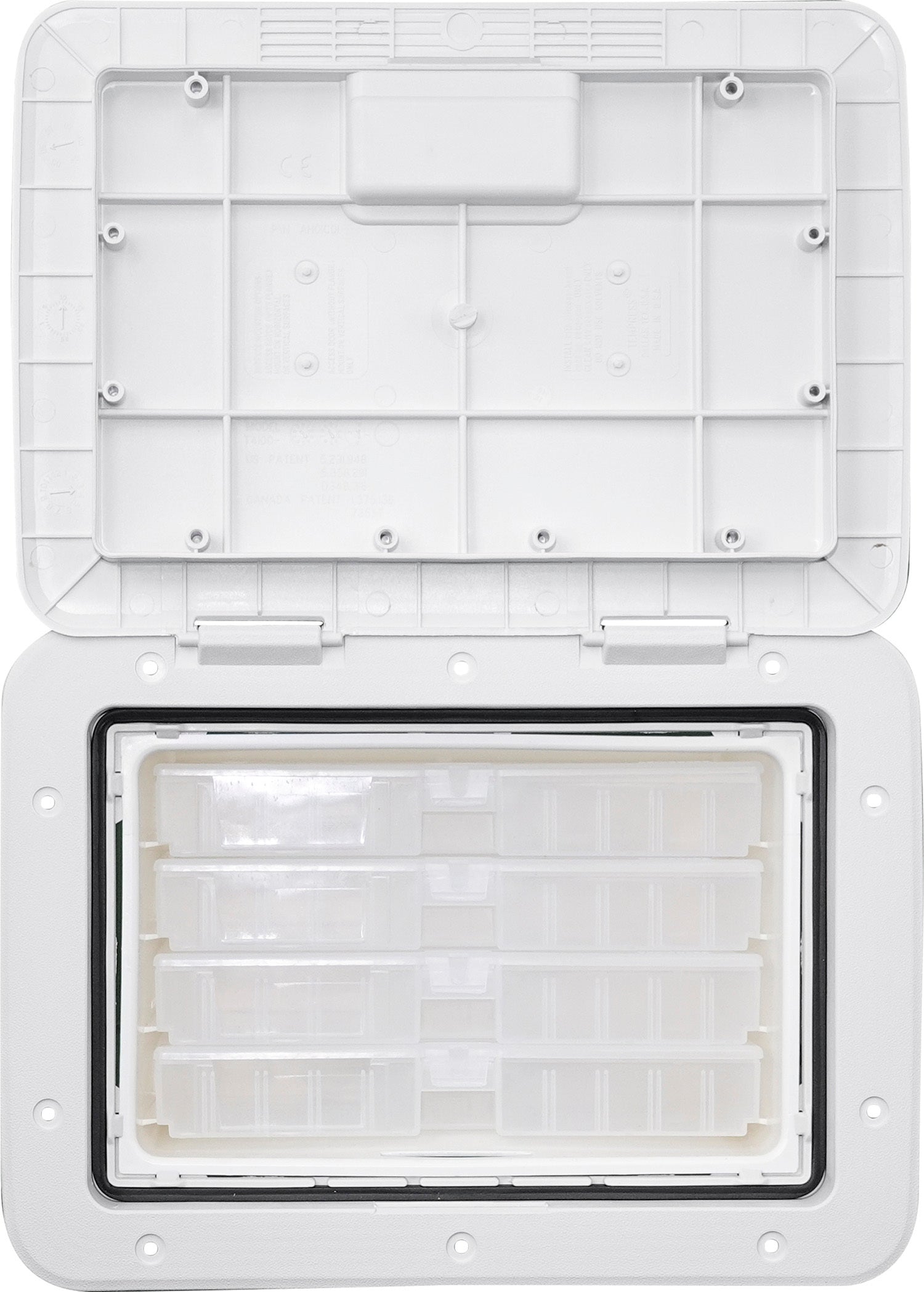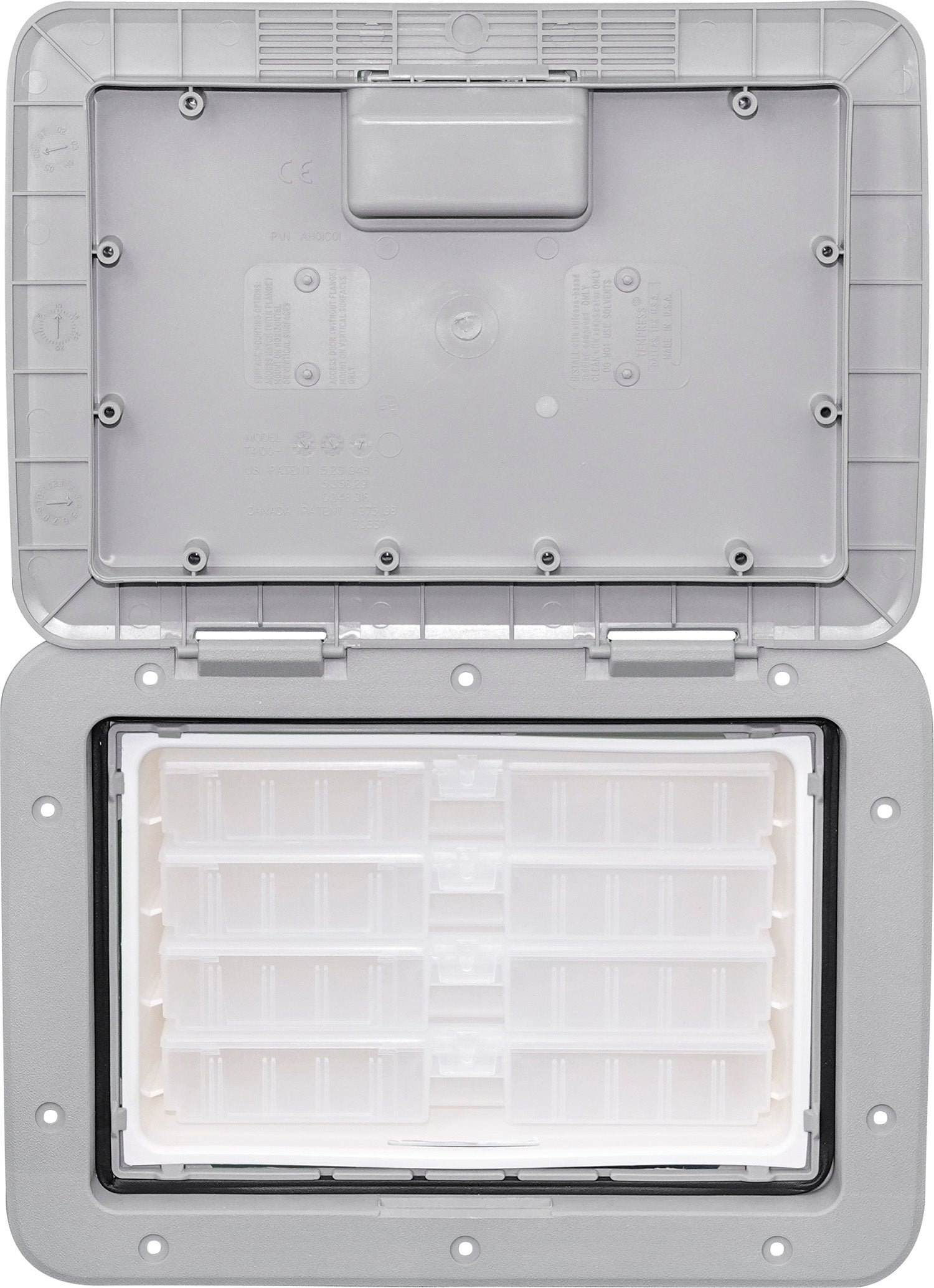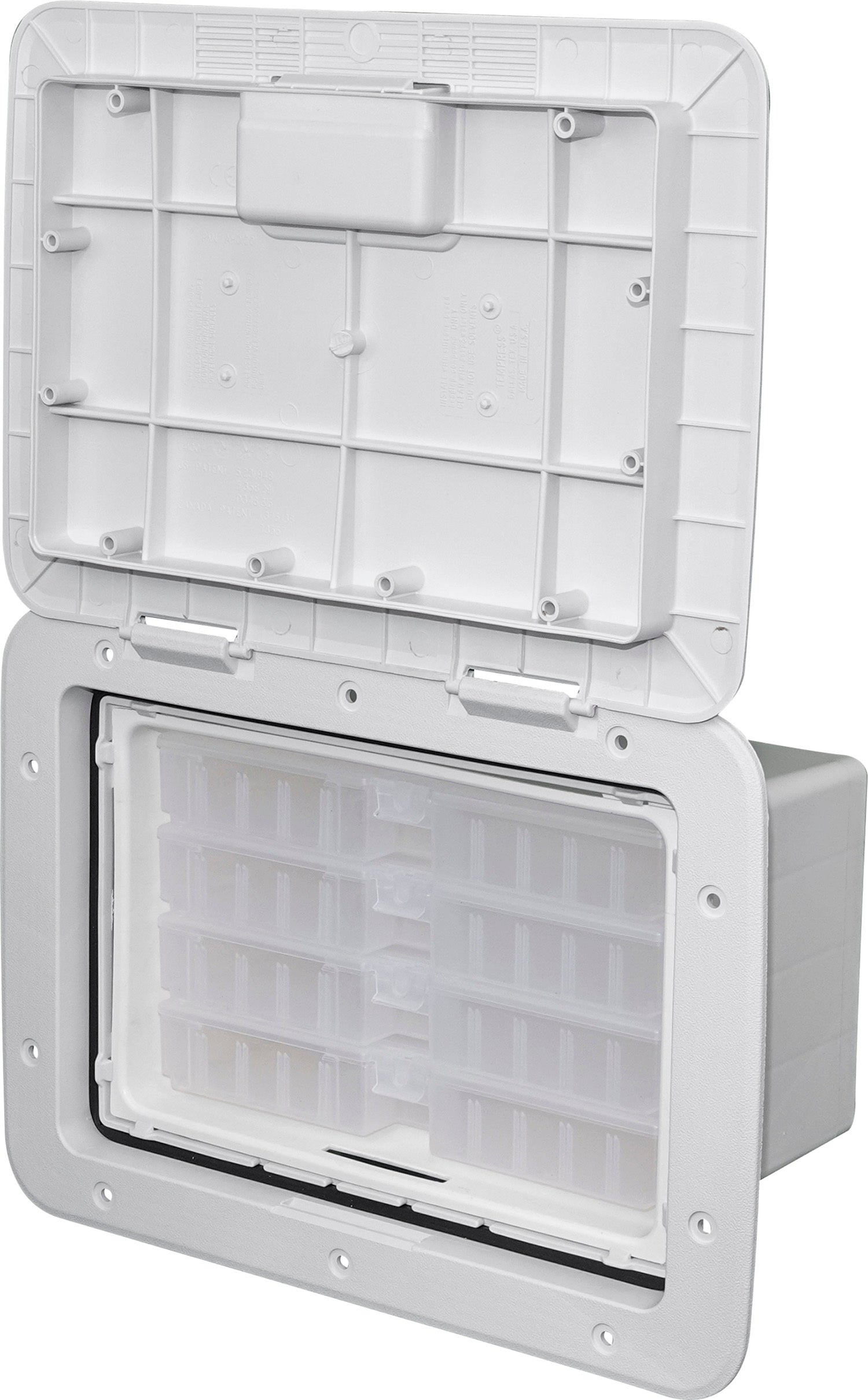 Extra tackle storage is always a necessity on a boat. The TEMPRESS Marine Access Tackle Systems provide just that. The 1115 Access Slam Tackle Hatch features 4 individual removable boxes with lids. The boxes lock into position to prevent sliding out while under way or in rough weather with the door open. The Slam Tackle uses the same hatch as our 1115 Access Slam. Only compatible with TEMPRESS #70090 tackle boxes.