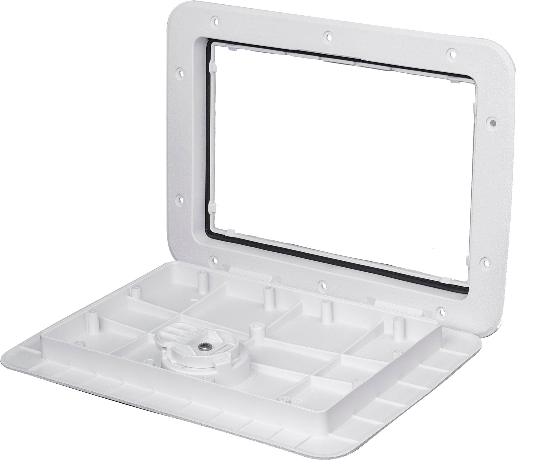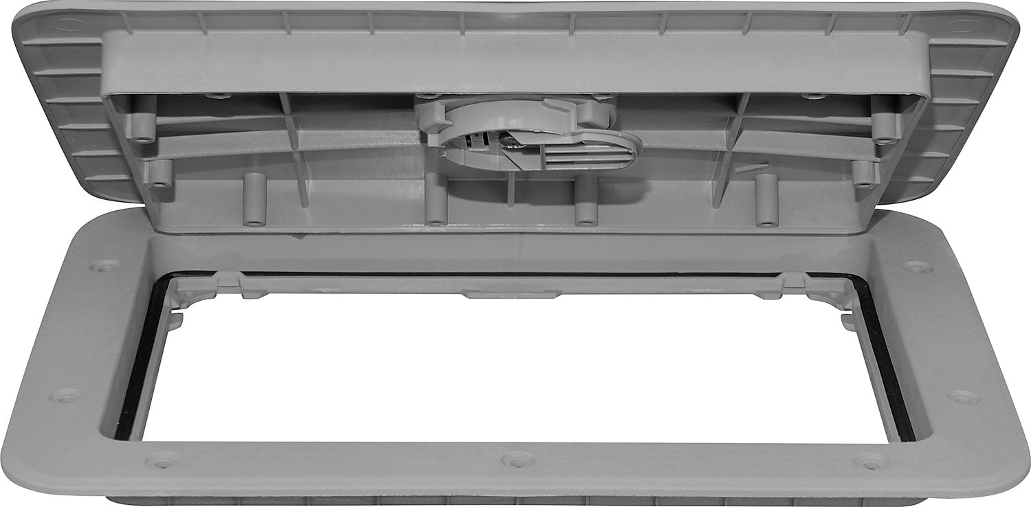 [tab name="Description"]The TEMPRESS Line Of Access Boat Hatches are as functional as they are stylish. The Marine Access Cam Hatch is made from a glass filled polypropylene, for strength and durability. All Access hatches are designed for heavy traffic areas, and will withstand people walking or standing upon them. This deck Hatch features dog down latches, that compress the gasket to create a weather tight seal with a quarter turn of the wrist. Access Hatches also utilize a patented integral hinge assembly that allows for easy lid removal. The beveled and skirted lid covers all fasteners for a clean look above or below decks. The Access Cam Hatch line is the perfect choice for easy dry storage bins, access to bait or fish wells, or electrical and plumbing lines.